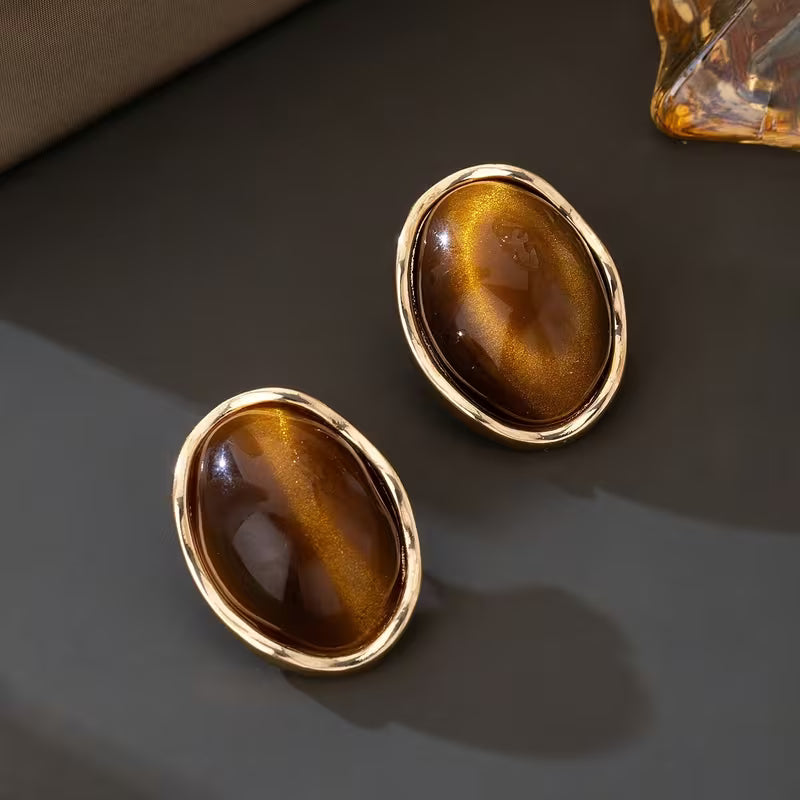 Diese goldfarbenen Ohrstecker mit braunem Stein setzen ein ruhiges, elegantes Statement. Die runde Form und der warme Farbton wirken zeitlos und lassen sich mühelos kombinieren – perfekt für den Alltag, aber auch passend zu einem Abendlook. Ein Accessoire, das deinem Outfit ohne Aufwand Tiefe verleiht.